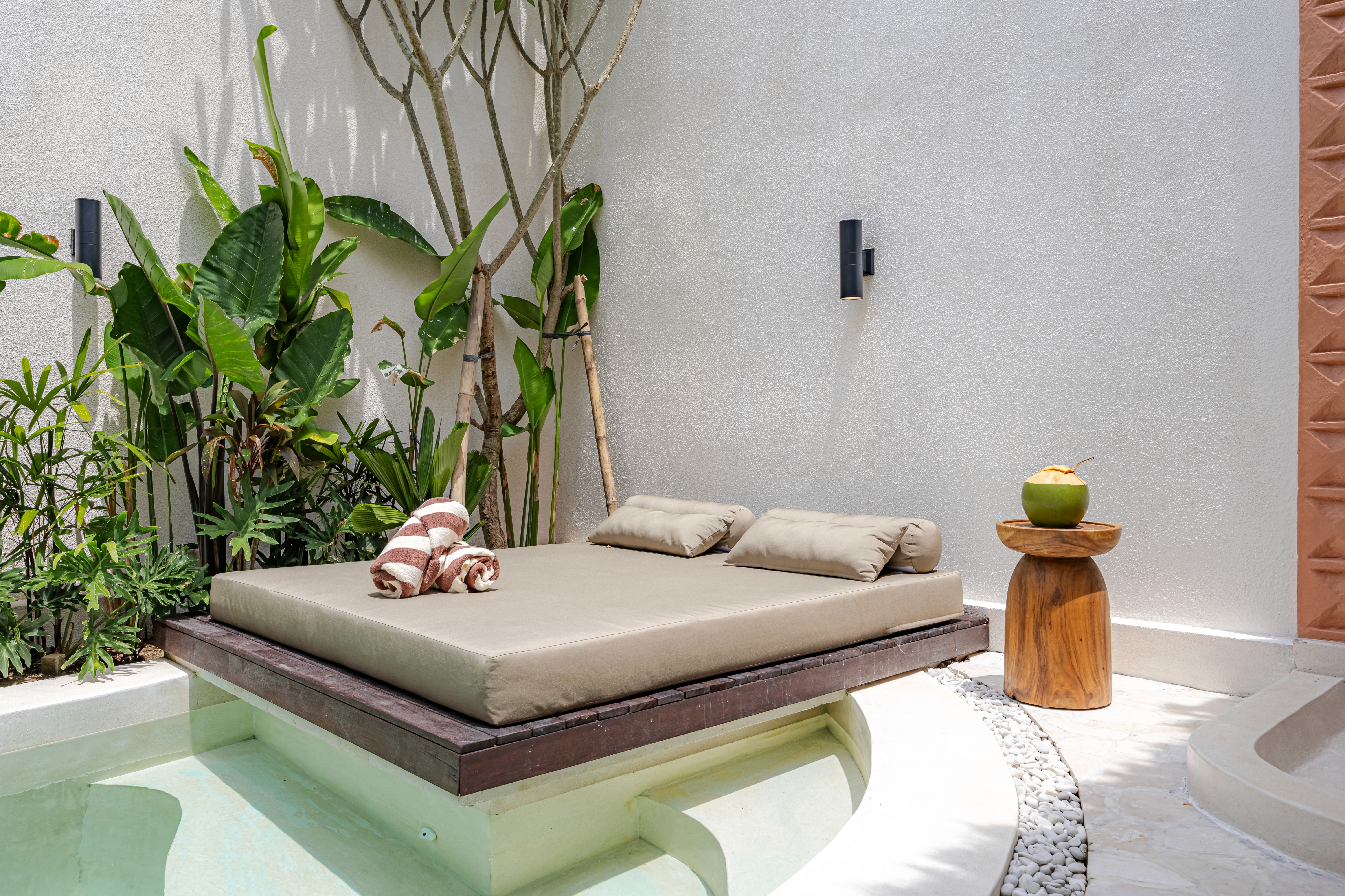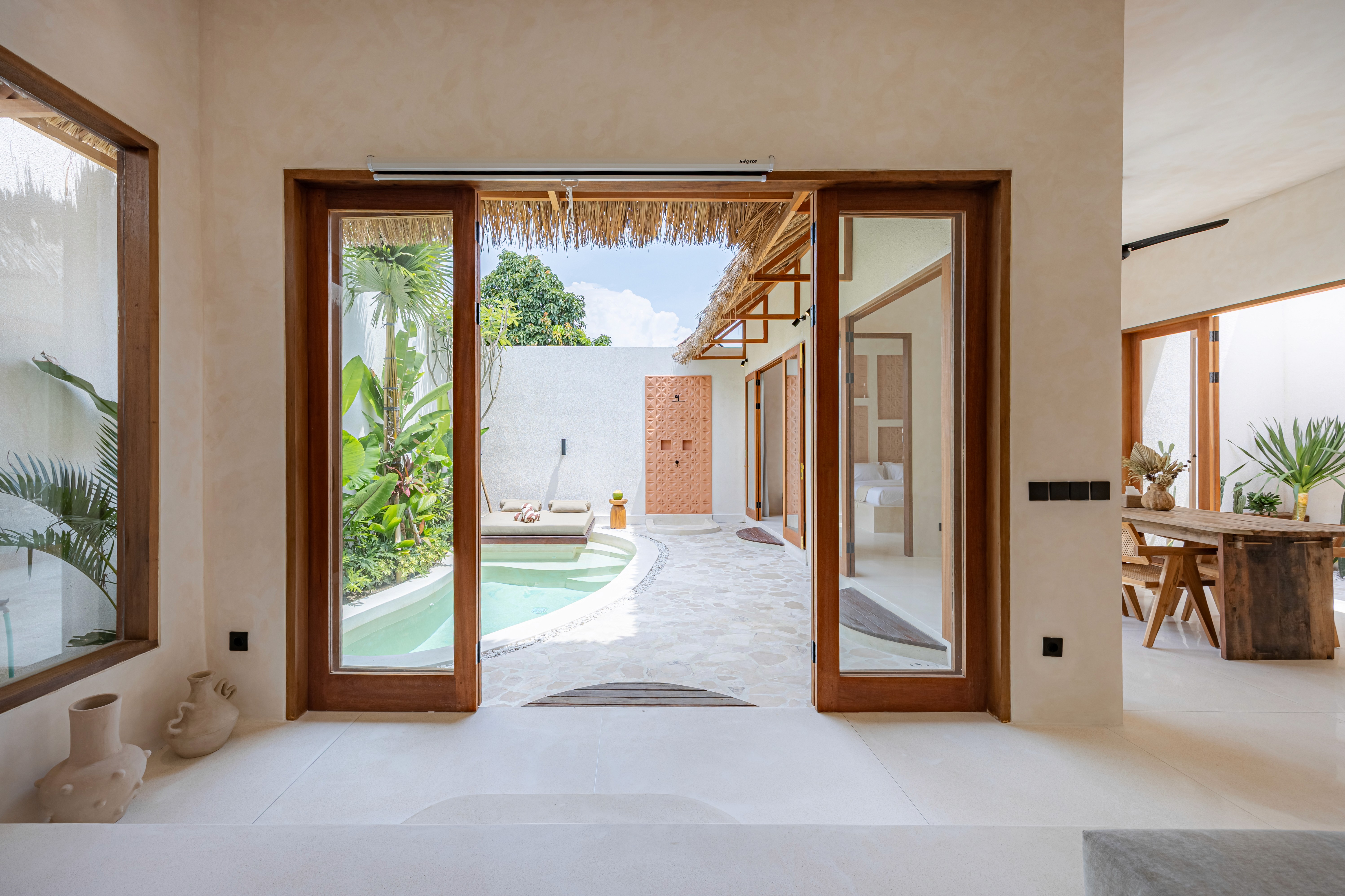 Step into your own tropical hideaway. The villa opens to a private pool area surrounded by greenery perfect for a morning dip or lazy afternoon by the sunbeds.