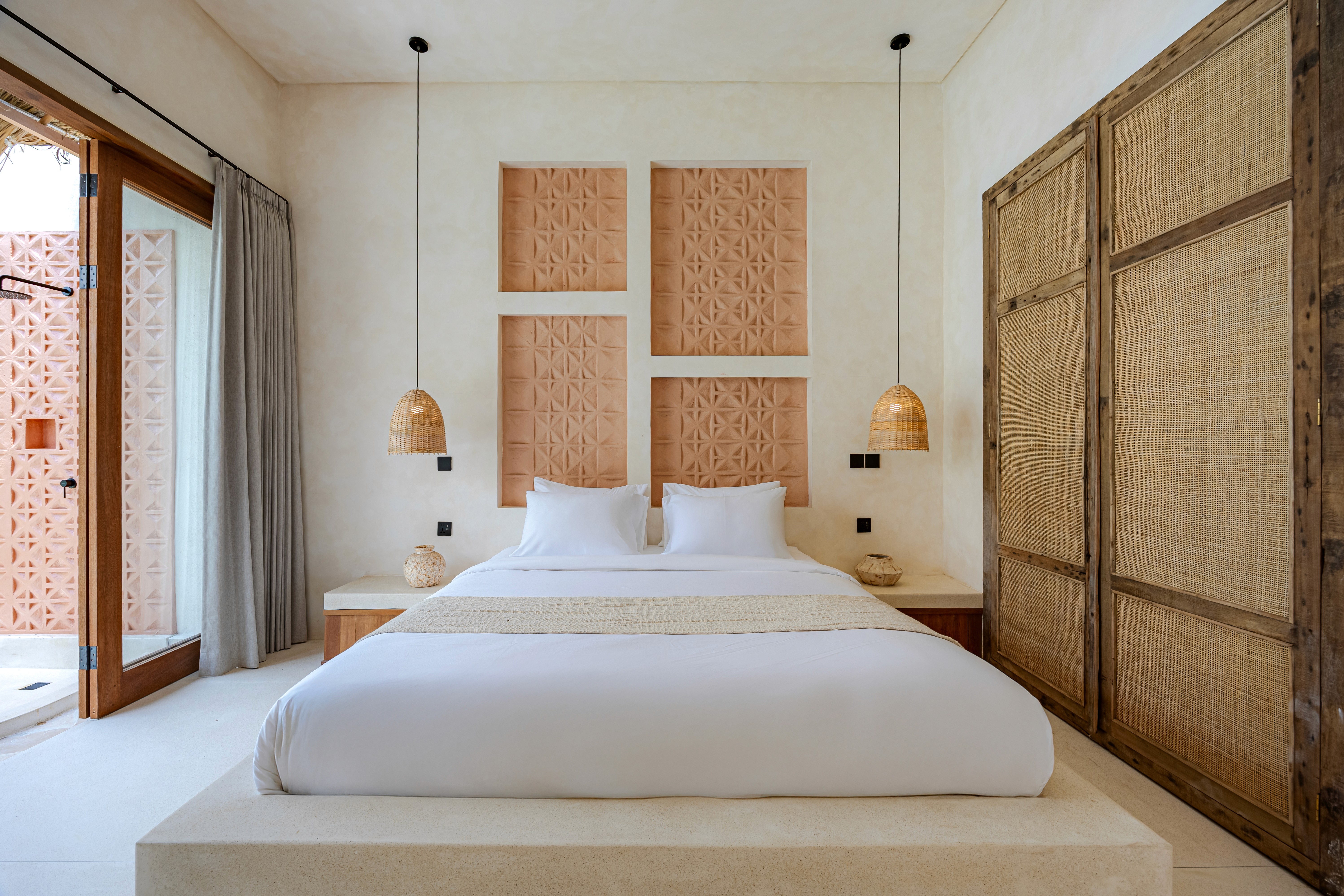 Villa Akuna 1 is a warm and modern 1-bedroom private villa perfect for couples or solo travelers seeking comfort and a touch of modern design. Just minutes from Kedungu Beach and surrounded by local cafés and hidden gems, this cozy retreat blends warm natural tones with a laid-back jungle vibe.